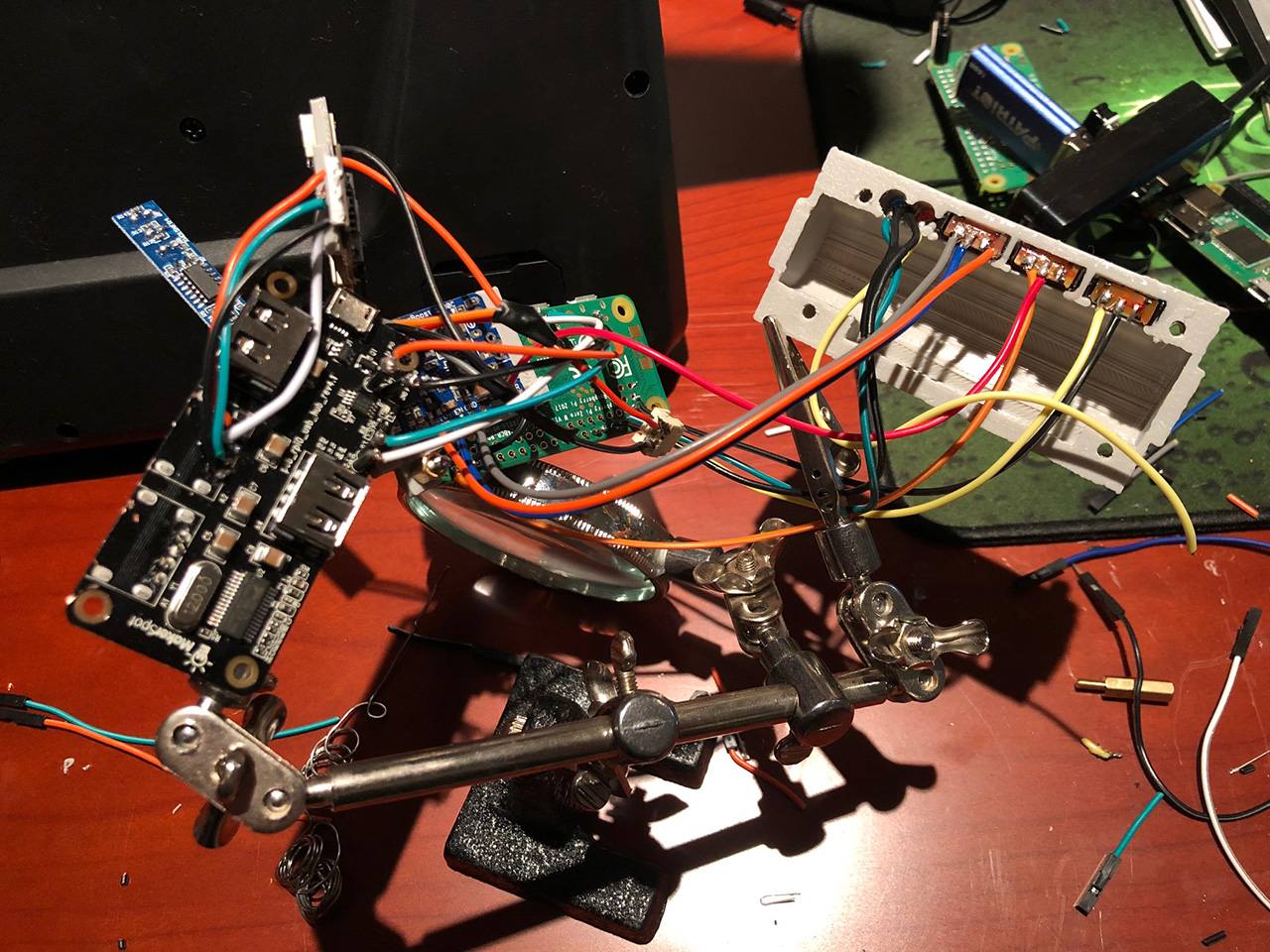 - 2 USB connectors need to be removed from the USB hat, and one of those USB connections can be soldered to the SD card reader chip.