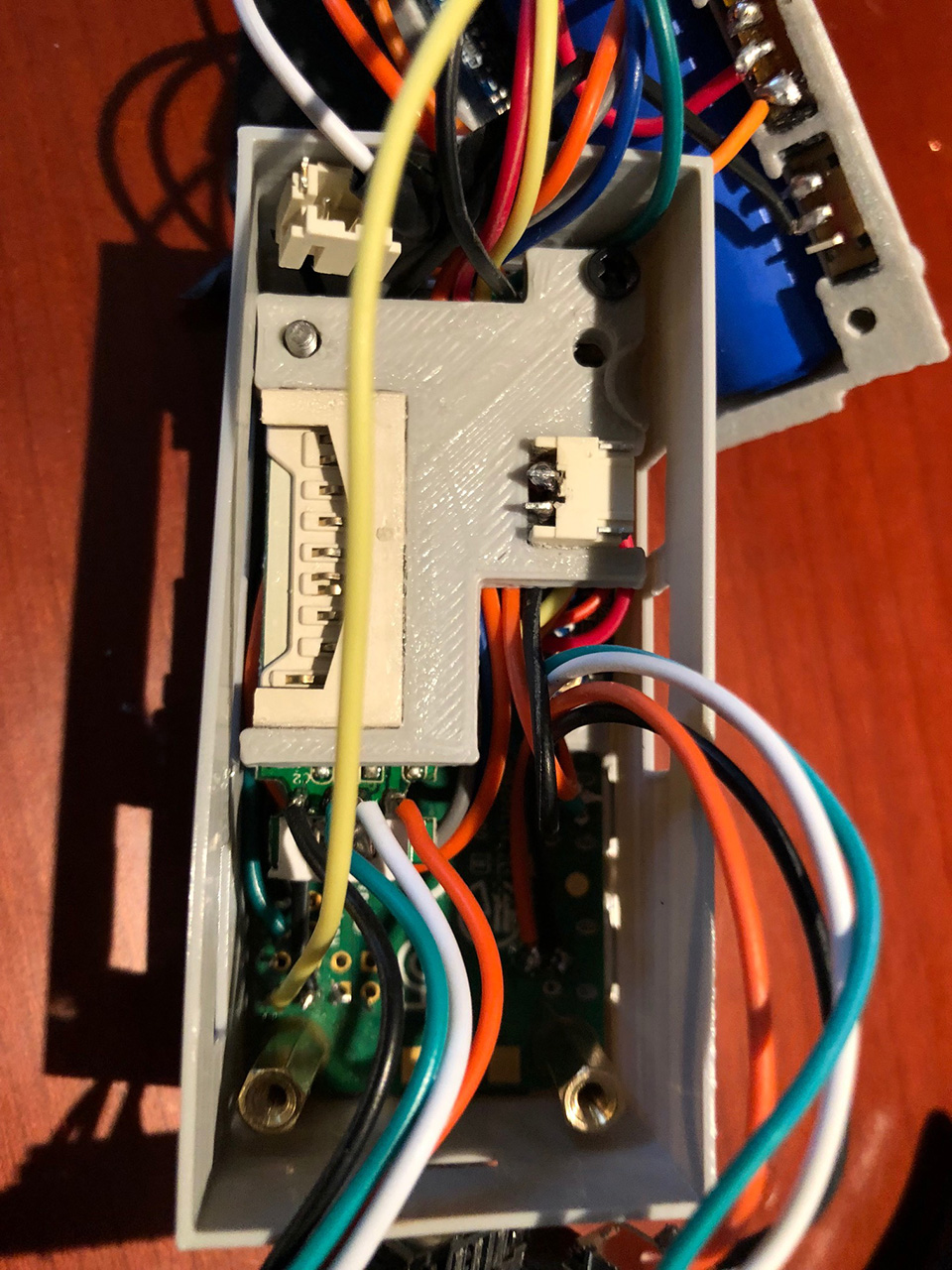 - The SD card reader and JST connector can be glued to the internal printed piece.